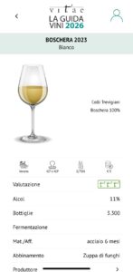 Qualche soddisfazione anche per il Boschera IGT Colli Trevigiani che entra in nella Guida Ais Vitae con la votazione di “3 viti”.